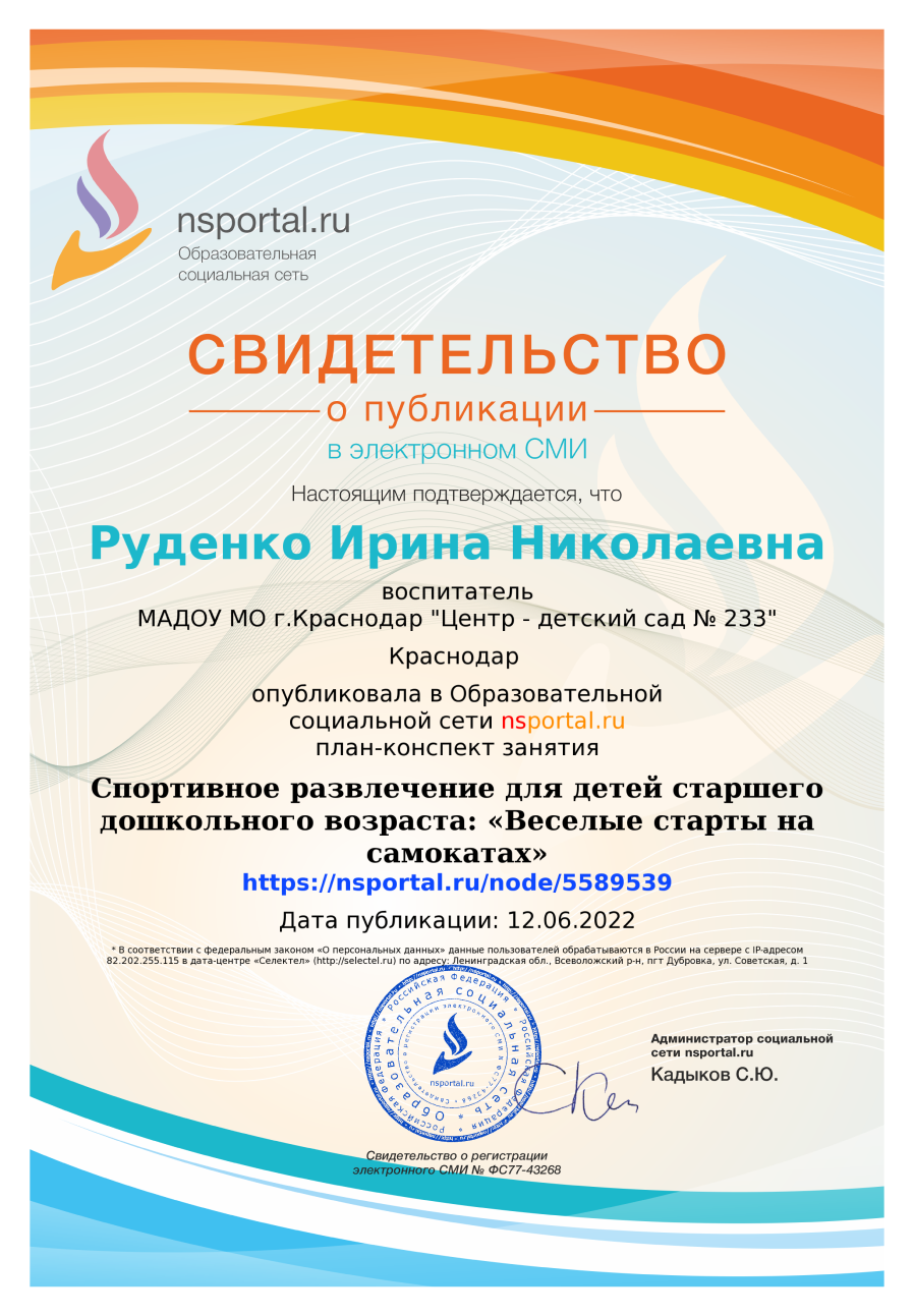 Спортивное развлечение для детей старшего дошкольного возраста: «Веселые старты на самокатах»